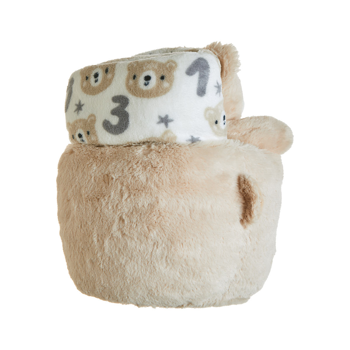 Καλαθάκι με απαλή, χνουδωτή υφή και διακοσμητικά αυτάκια και μουσούδα, για την αποθήκευση των αξεσουάρ του μωρού και των βασικών ειδών.