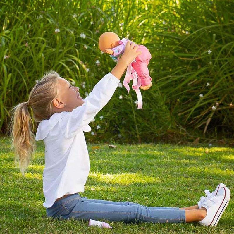 Διαθέτει λουράκια σαν αυτά του μάρσιπου ώστε το παιδί να μπορεί να τα φορέσει στην πλάτη ή στο στήθος και να πάρει την κούκλα μαζί του παντού.