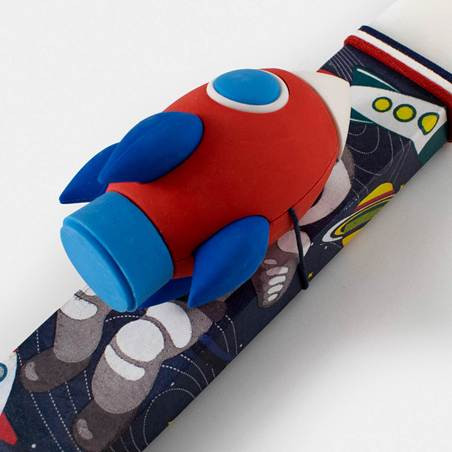 Λαμπάδα 25εκ. με εκτύπωση και γόμα διαστημόπλοιο.