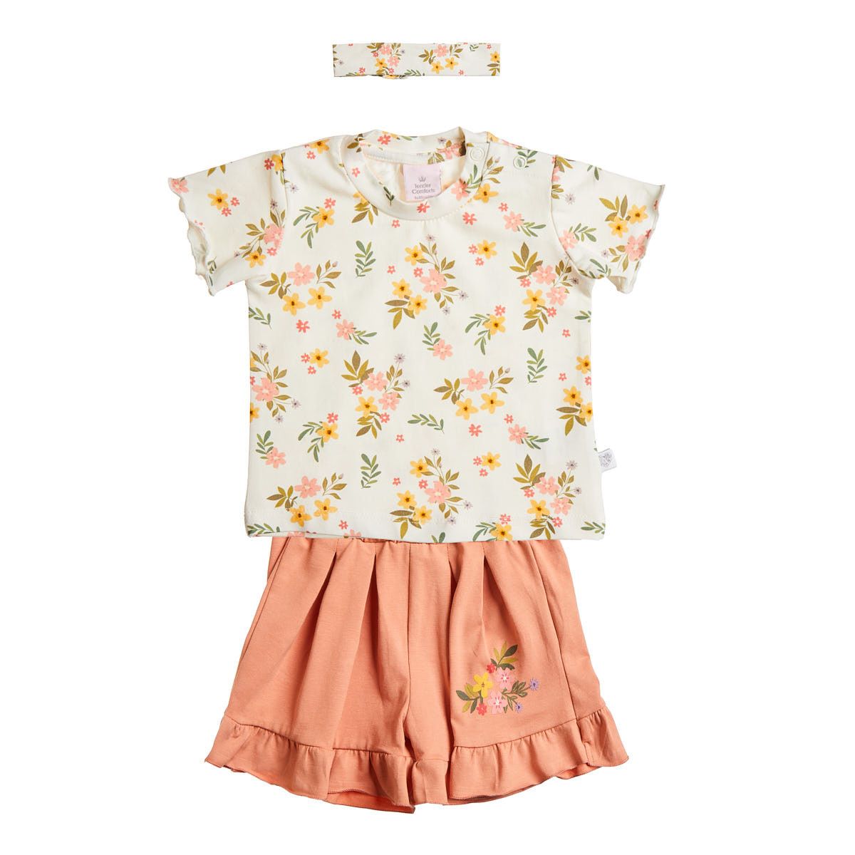 Αποτελείται απο μπλούζα, σορτς και ασορτί κορδέλα για τα μαλλιά.