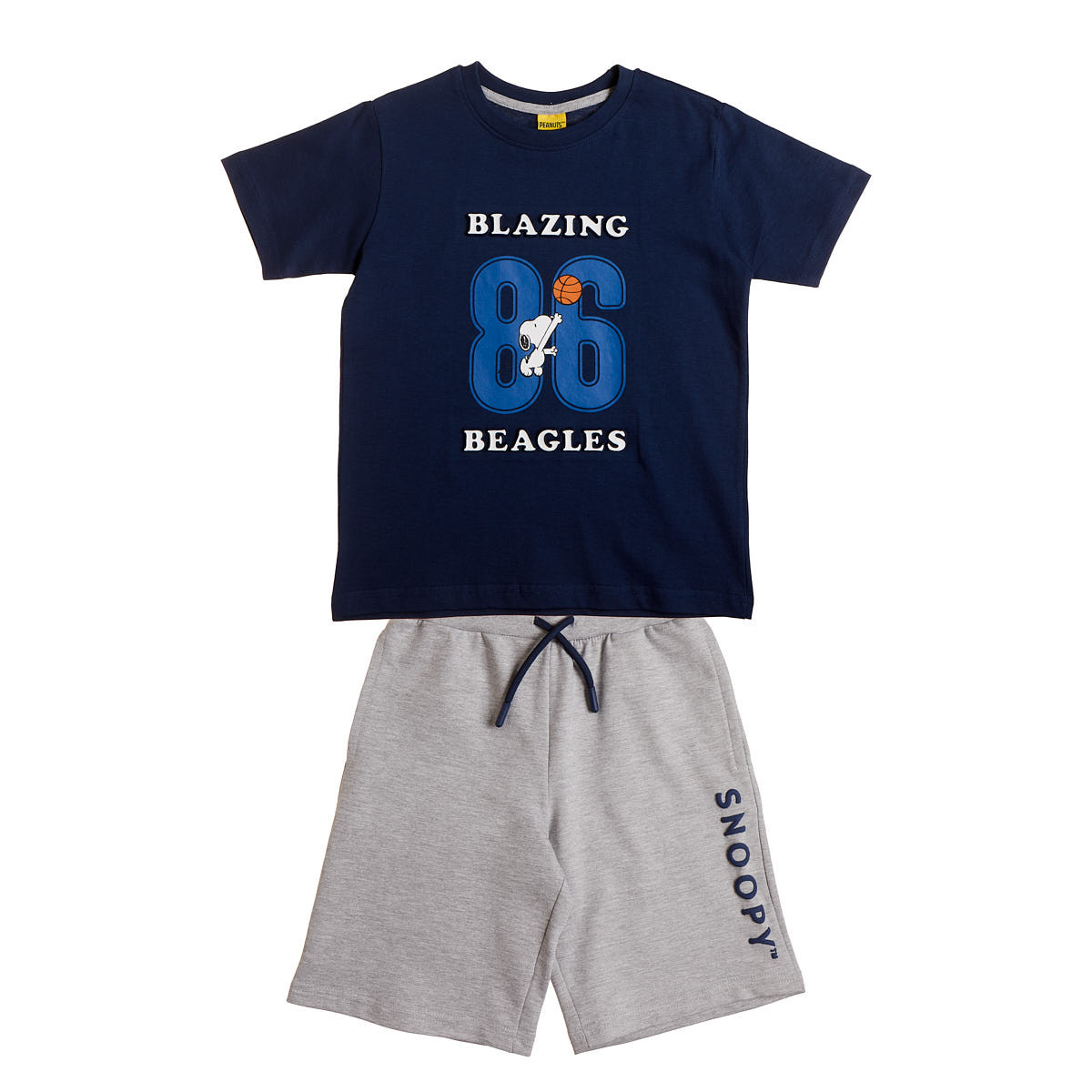 Σετ Snoopy για αγόρια απο 100% βαμβακερό ύφασμα αποτελούμενο απο μπλούζα και βερμούδα.
