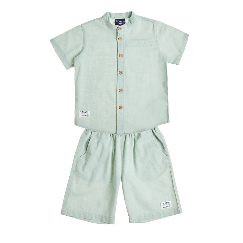 Σετ απο 100% βαμβακερό, τύπου λινό, ύφασμα αποτελούμενο απο πουκάμισο και βερμούδα.