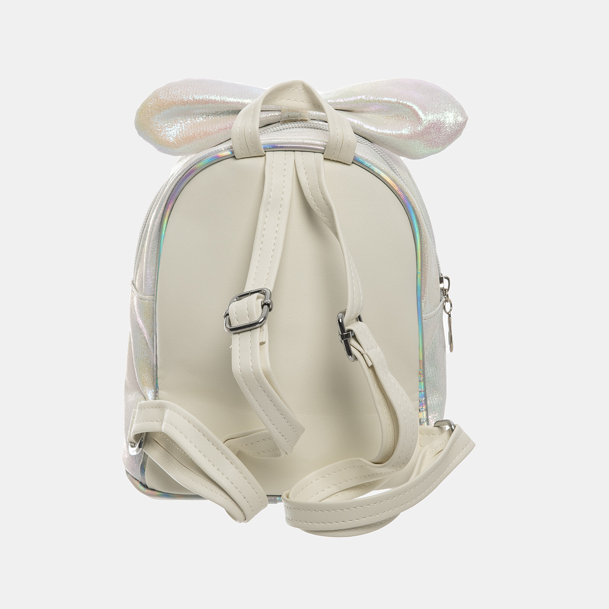 • Τσαντάκι πλάτης ασημί με φιόγκο και κονφετί