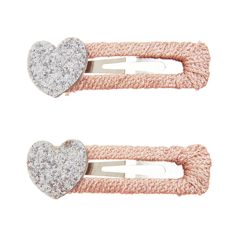 Κλιπ για τα μαλλιά, σετ 2τμχ, ντυμένα με γυαλιστερό νήμα και απλικέ καρδιά με glitter εφέ.