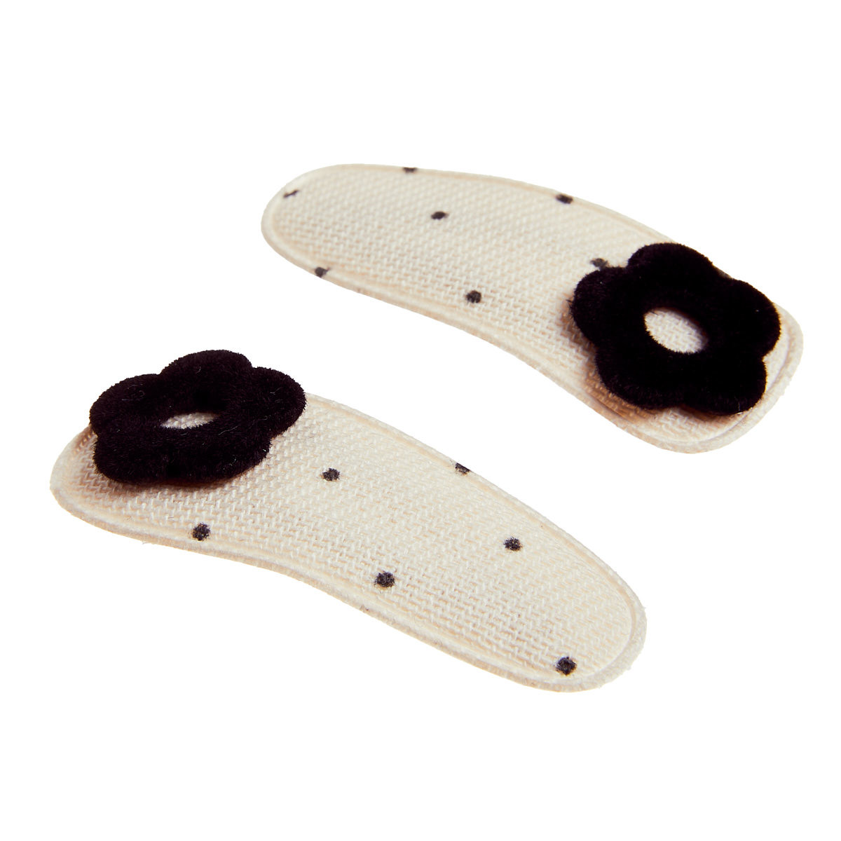 Κλιπ για τα μαλλιά, σετ 2τμχ, ντυμένα με πουά ύφασμα και απλικέ λουλούδι.