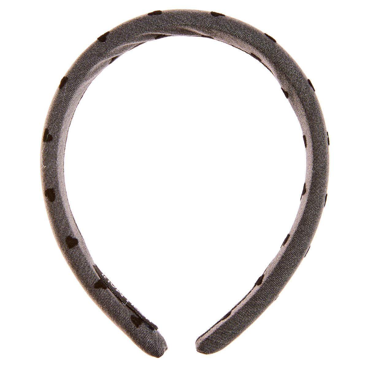 Στέκα για τα μαλλιά ντυμένη με ύφασμα, με γέμισμα και με μοτίβο καρδιές.
