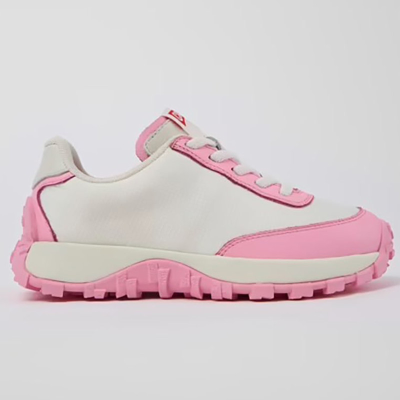 Λευκά παιδικά αθλητικά παπούτσια για κορίτσια, απο την εταιρεία Camper, από ύφασμα/δέρμα με ελαστικά κορδόνια, αφαιρούμενα, πατώματα PU και εξωτερικές σόλες από 100% καουτσούκ.