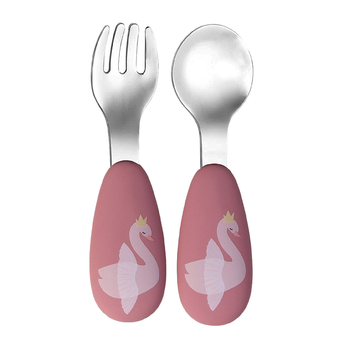 Αυτό το παιδικό σετ μαχαιροπίρουνων αποτελείται από ένα πιρούνι και ένα κουτάλι.