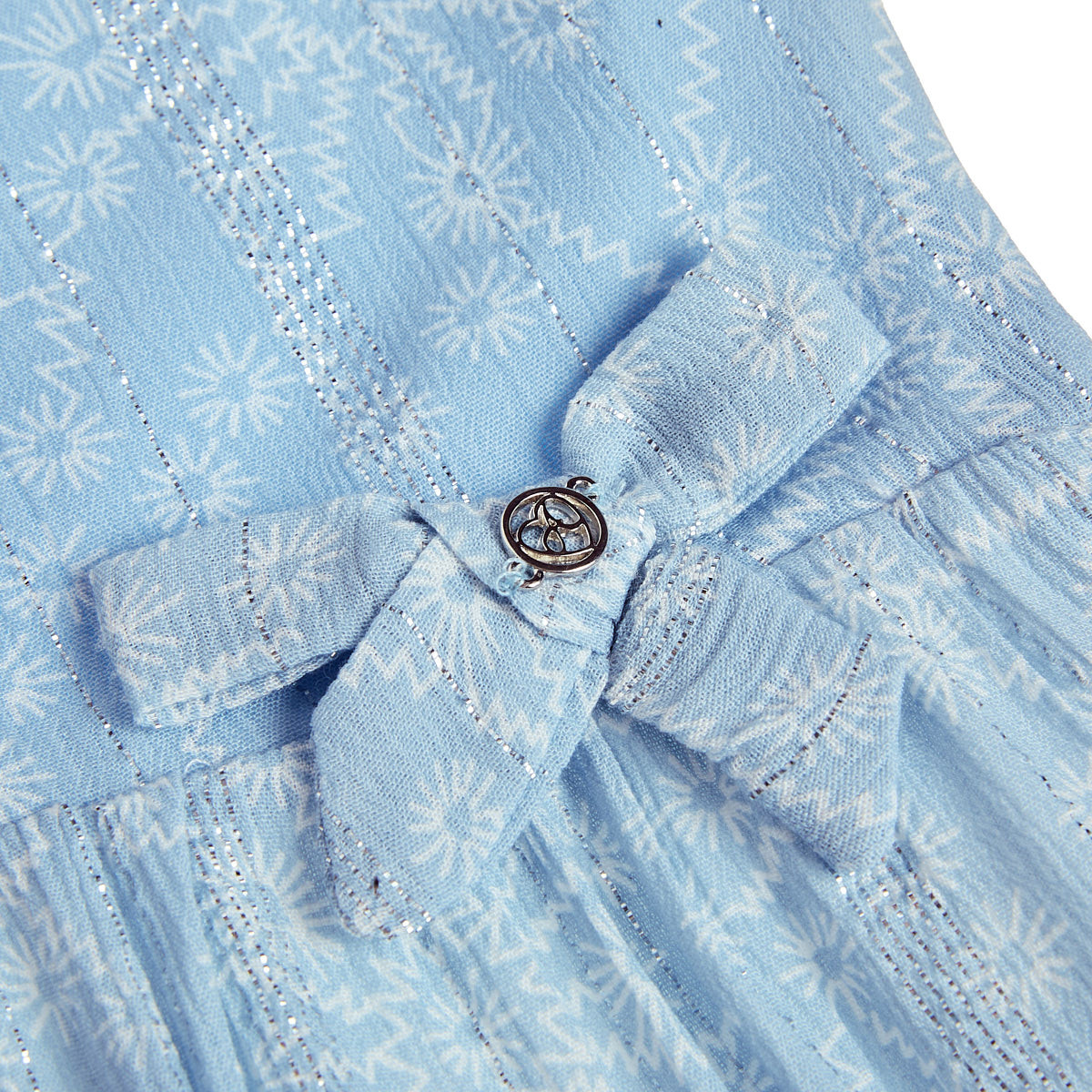 Εντυπωσιακό βαμβακερό φόρεμα με βισκόζη, διακοσμημένο με μεταλλιζέ νήμα που χαρίζει διακριτική λάμψη.