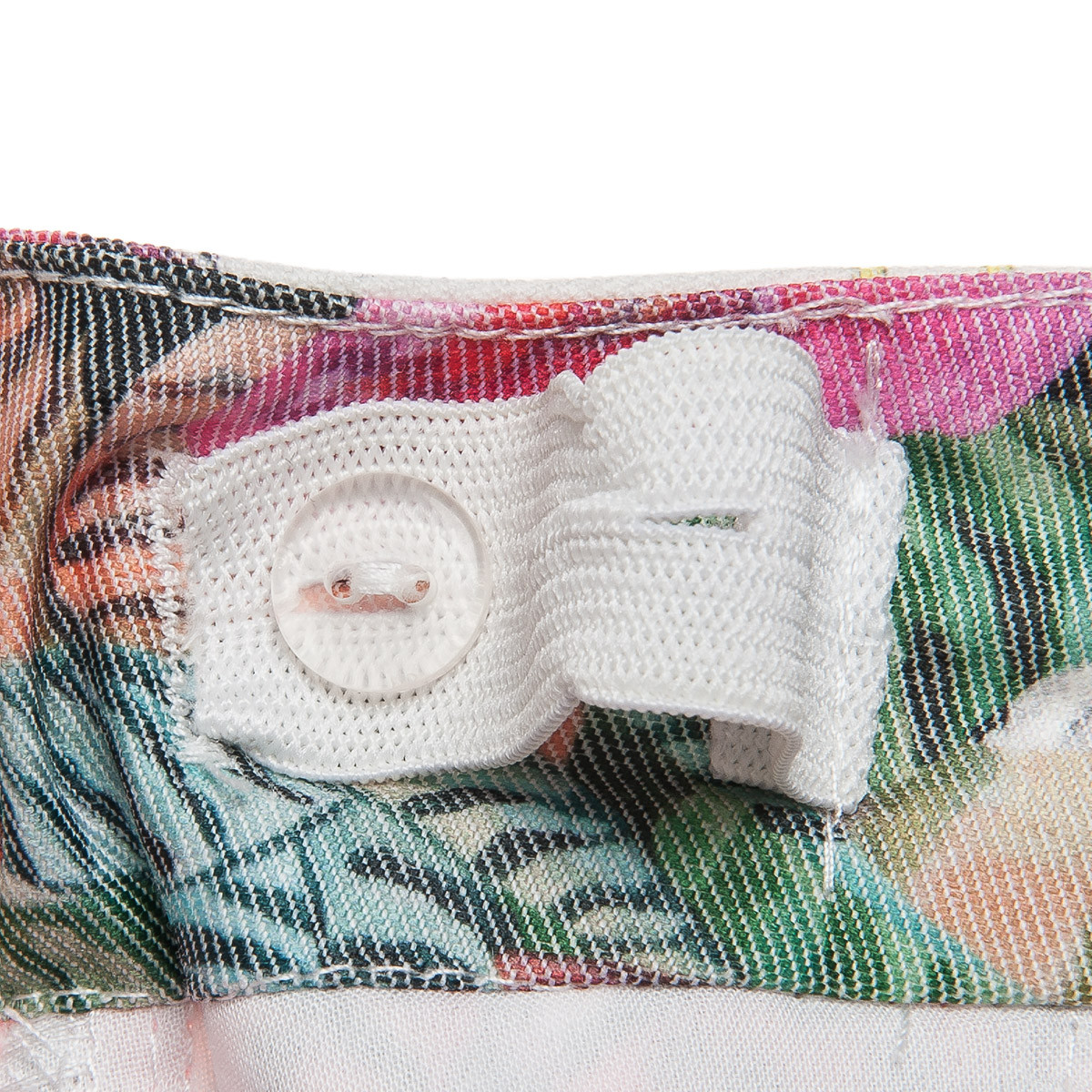 Παντελόνι σε ίσια γραμμή με floral all over μοτίβο. Διαθέτει λάστιχο αυξομείωσης εσωτερικά στη μέση για καλύτερη εφαρμογή και λεπτομέρεια φιογκάκι με καρδιά.Έχει δυο τσέπες μπροστά και δυο πίσω.