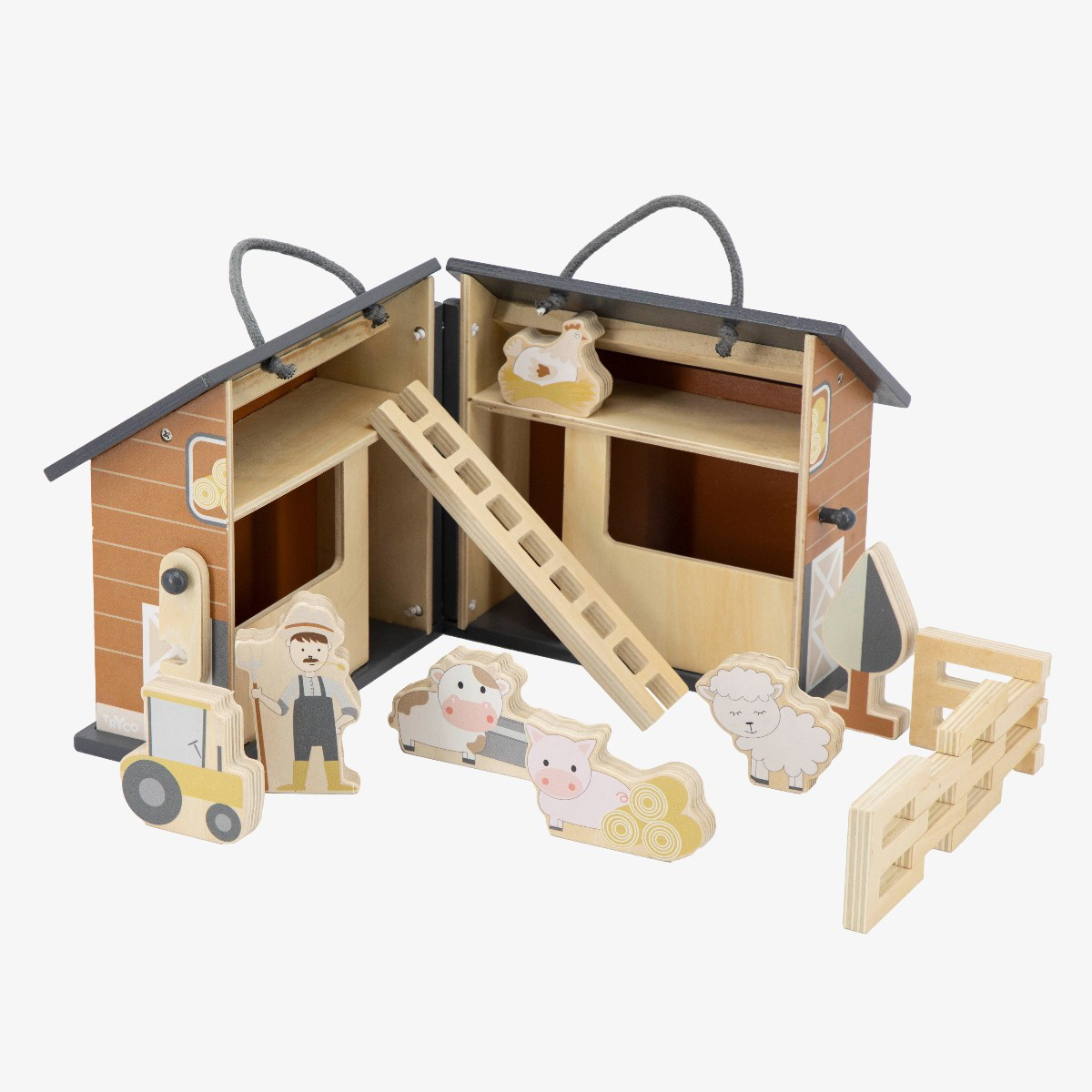 Αυτή η ξύλινη φάρμα Tryco είναι ιδανική για να την πάρετε μαζί σας στους παππούδες και τις γιαγιάδες, για παράδειγμα! Μπορείτε εύκολα να την διπλώσετε και να την πάρετε μαζί σας με το κορδόνι.
