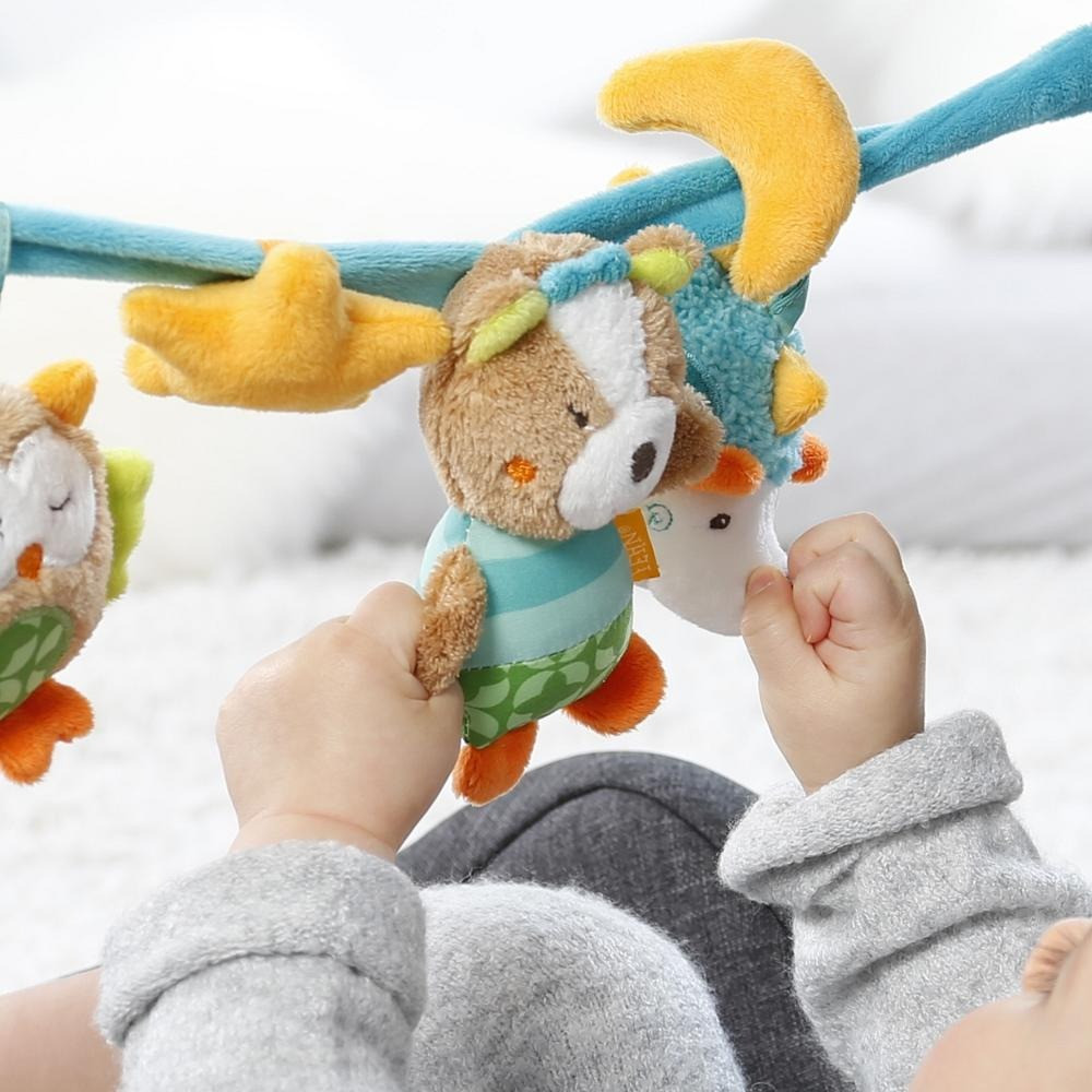 Με κουκουβάγια που τρίζει, αλεπού που κροταλίζει και σκαντζόχοιρο με καθρέφτη, η αλυσίδα προσκαλεί το μωρό σε πιάσιμο και εξερεύνηση, ενώ οι ευέλικτες δυνατότητες παιχνιδιού ενισχύουν τον πρώτο συντονισμό χεριού-ματιού.