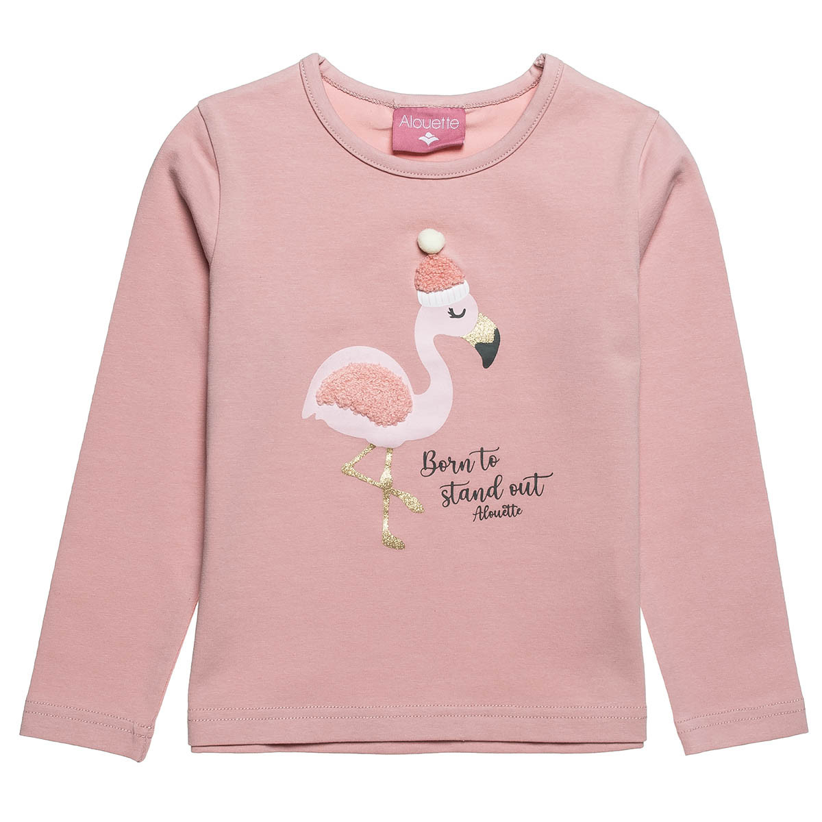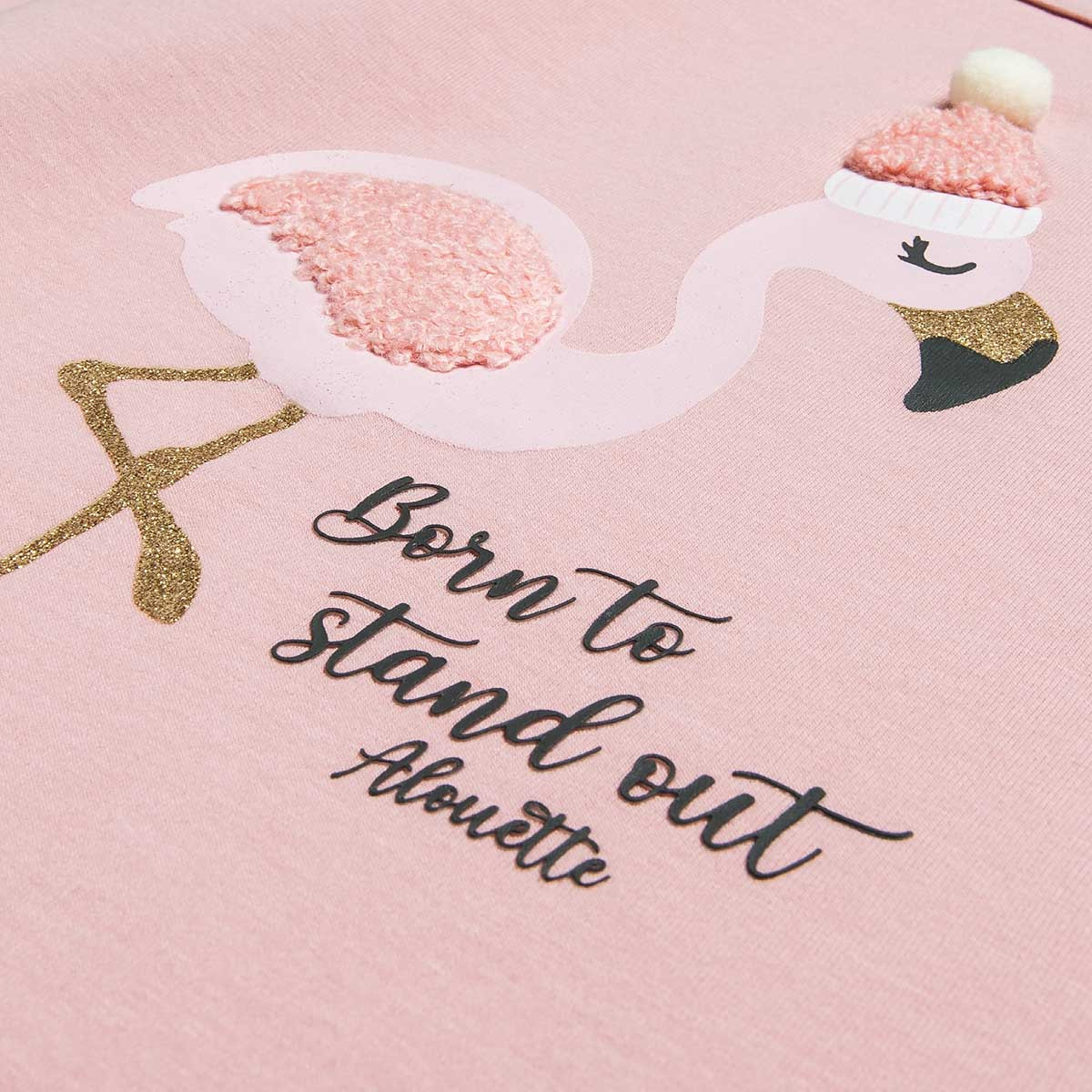 Βαμβακερή μπλούζα με μακρύ μανίκι και τύπωμα διακοσμημένο με glitter,  πομ πον και ανάγλυφα στοιχεία.