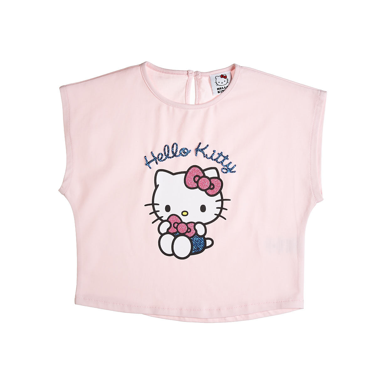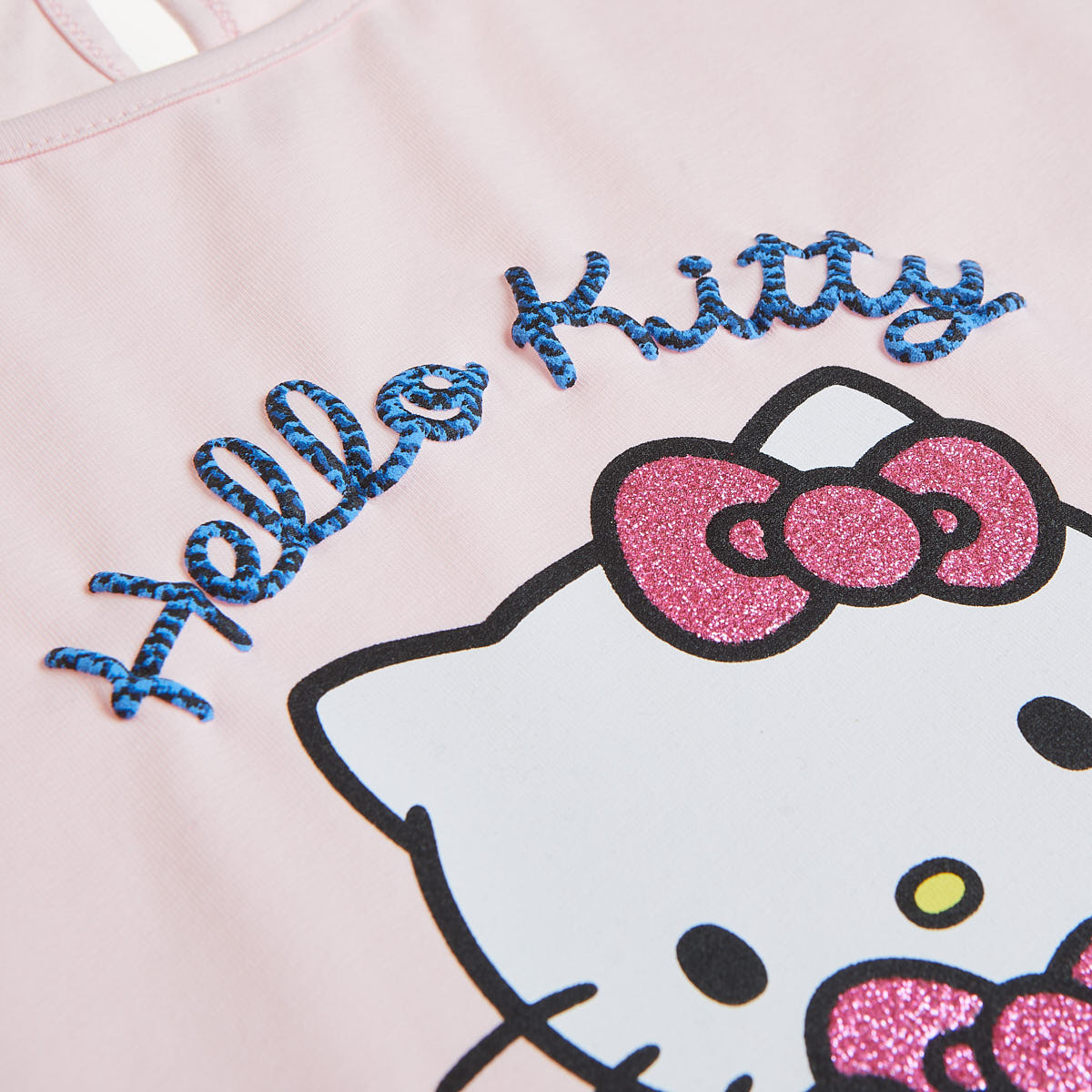Βαμβακερή μπλούζα Hello Kitty με τύπωμα μπροστά διακοσμημένο με glitter και ανάγλυφα στοιχεία.