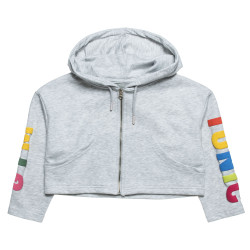 Ζακέτα cropped Gym Tonic με κουκούλα και φερμουάρ. Τσέπες μπροστά και ανάγλυφα πολύχρωμα γράμματα στα μανίκια. }