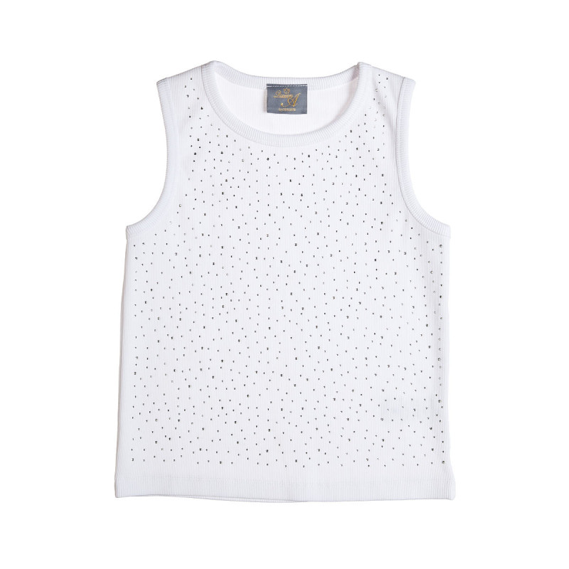 Αμάνικη βαμβακερή μπλούζα με ριπ υφή και διακοσμητικά στρας στο μπροστινό μέρος.