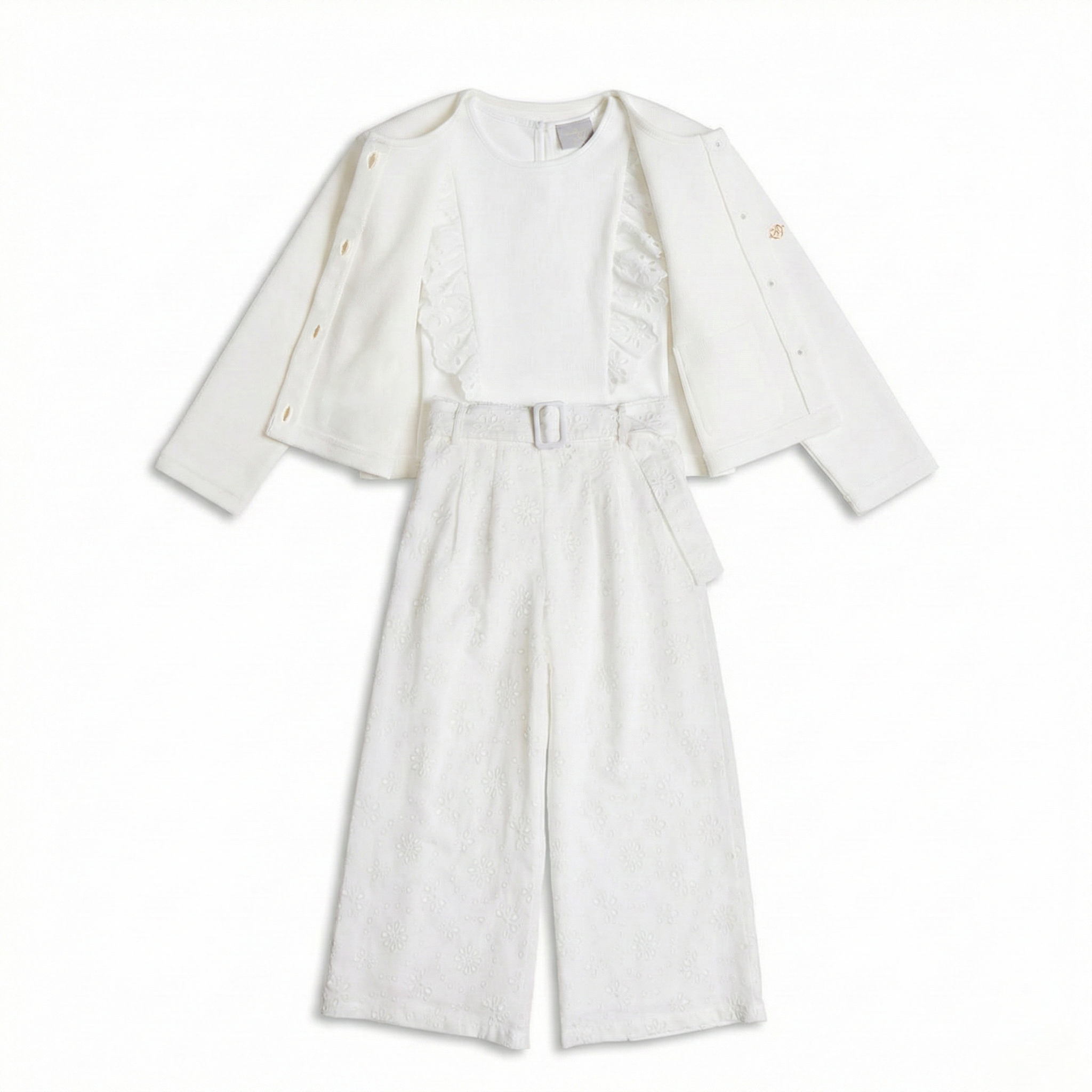 Παντελόνι wide leg για κορίτσια, απο 100% βαμβακερό ύφασμα και διάτρητα κεντήματα. Διαθέτει ζώνη και λάστιχο στη μέση. }