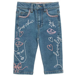 Παντελόνι τζιν με τσέπες μπροστά και πίσω και εντυπωσιακά κεντητά στοιχεία. Με κουμπί εσωτερικά στη μέση και λάστιχο αυξομείωσης για καλύτερη ρύθμιση και εφαρμογή. }