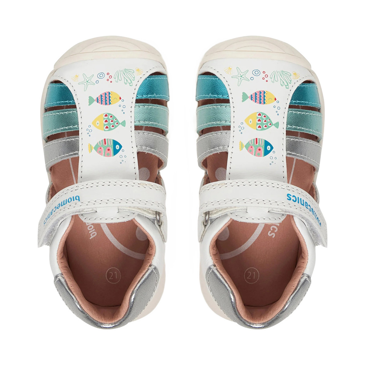 Ένα γλυκό παιδικό πέδιλο με κλειστή μύτη, ειδικά σχεδιασμένο για κορίτσια.