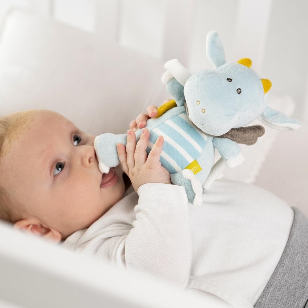 Ο βελούδινος δράκος δεν είναι απλώς ο ιδανικός συμπαίκτης, αλλά μπορεί εύκολα να τοποθετηθεί στην κούνια του μωρού, στο καροτσάκι ή στο πορτ μπεμπέ του μωρού και έτσι είναι ο τέλειος σύντροφος στο σπίτι ή εν κινήσει.