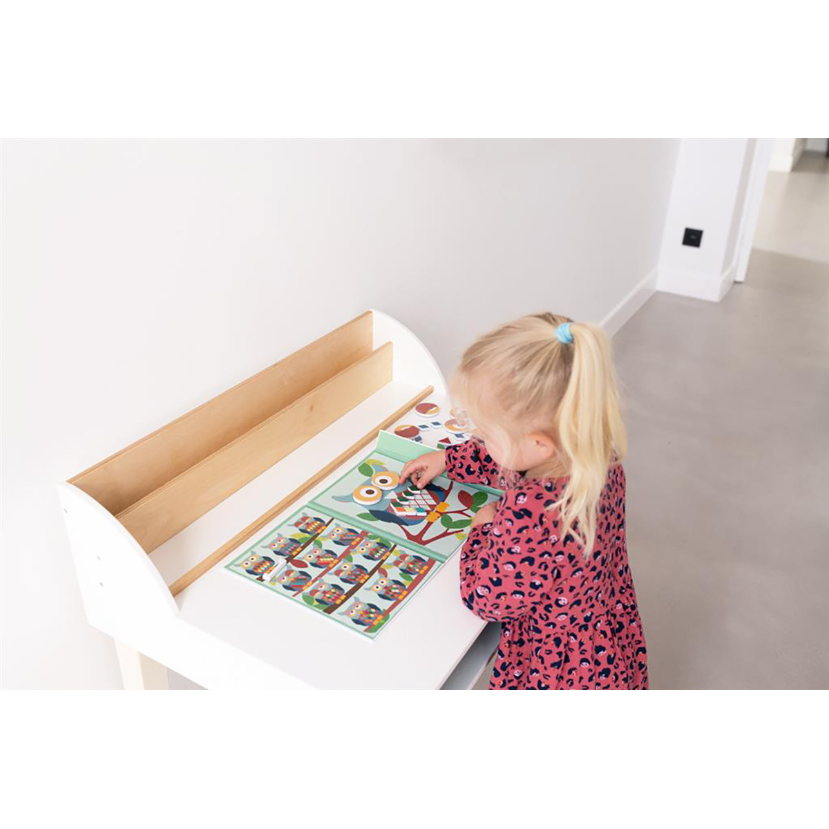 Προσθέστε λίγο όμορφο χρώμα στα φτερά της κουκουβάγιας αναδημιουργώντας τα 12 παραδείγματα στο αριστερό πτερύγιο του βιβλίου χρησιμοποιώντας τους χρωματιστούς μαγνήτες στο δεξί πτερύγιο του βιβλίου.