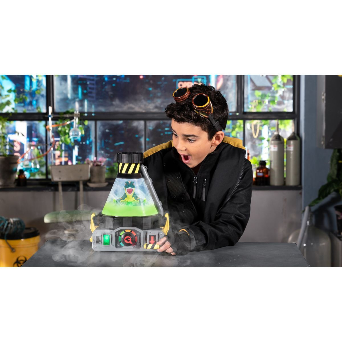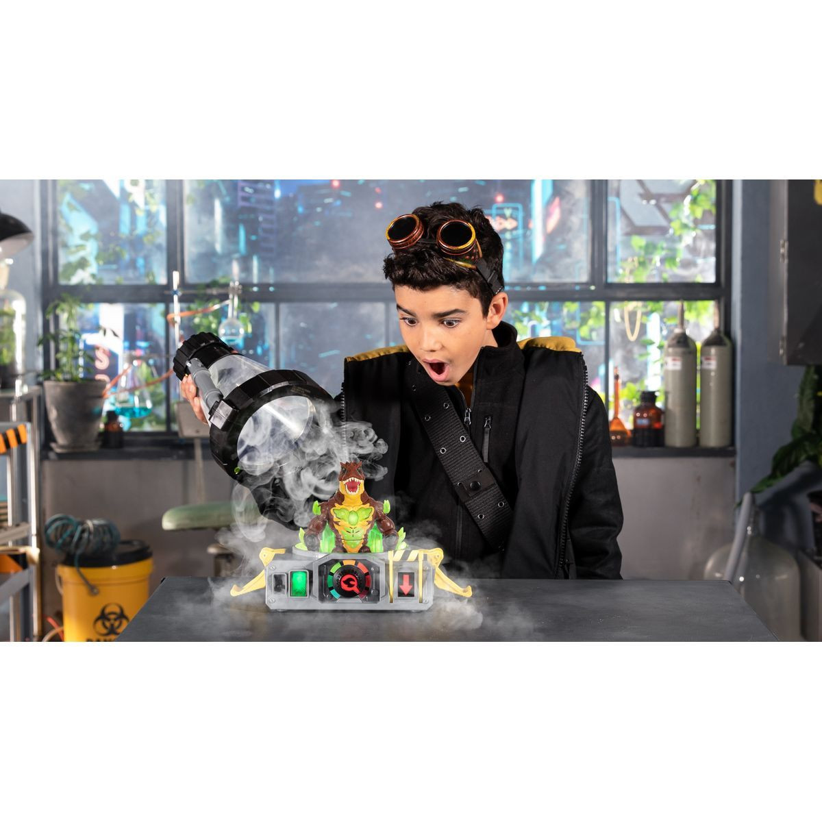 Ρίξτε μέσα στο θάλαμο όλα τα υλικά, ενεργοποιήστε με το δαχτυλικό σας αποτύπωμα, τραβήξτε προς τα κάτω τον μοχλό έκτακτης ανάγκης για να αποστραγγίσετε το υγρό και να αποκαλύψετε τον τερατο-δεινόσαυρο που θα εμφανιστεί περιτριγυρισμένος από ένα σύννεφο πραγματικής "βιολογικής ομίχλης"! Τώρα ήρθε η ώρα για μάχη!