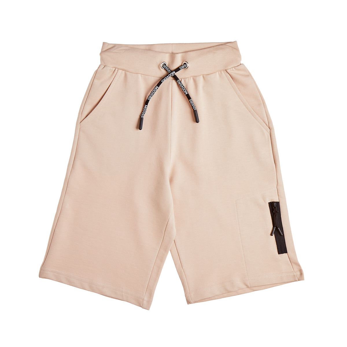 Βερμούδα με λάστιχο και κορδόνι στη μέση για καλύτερη εφαρμογή, πλαϊνές τσέπες και τσέπη στο πόδι με φερμουάρ.