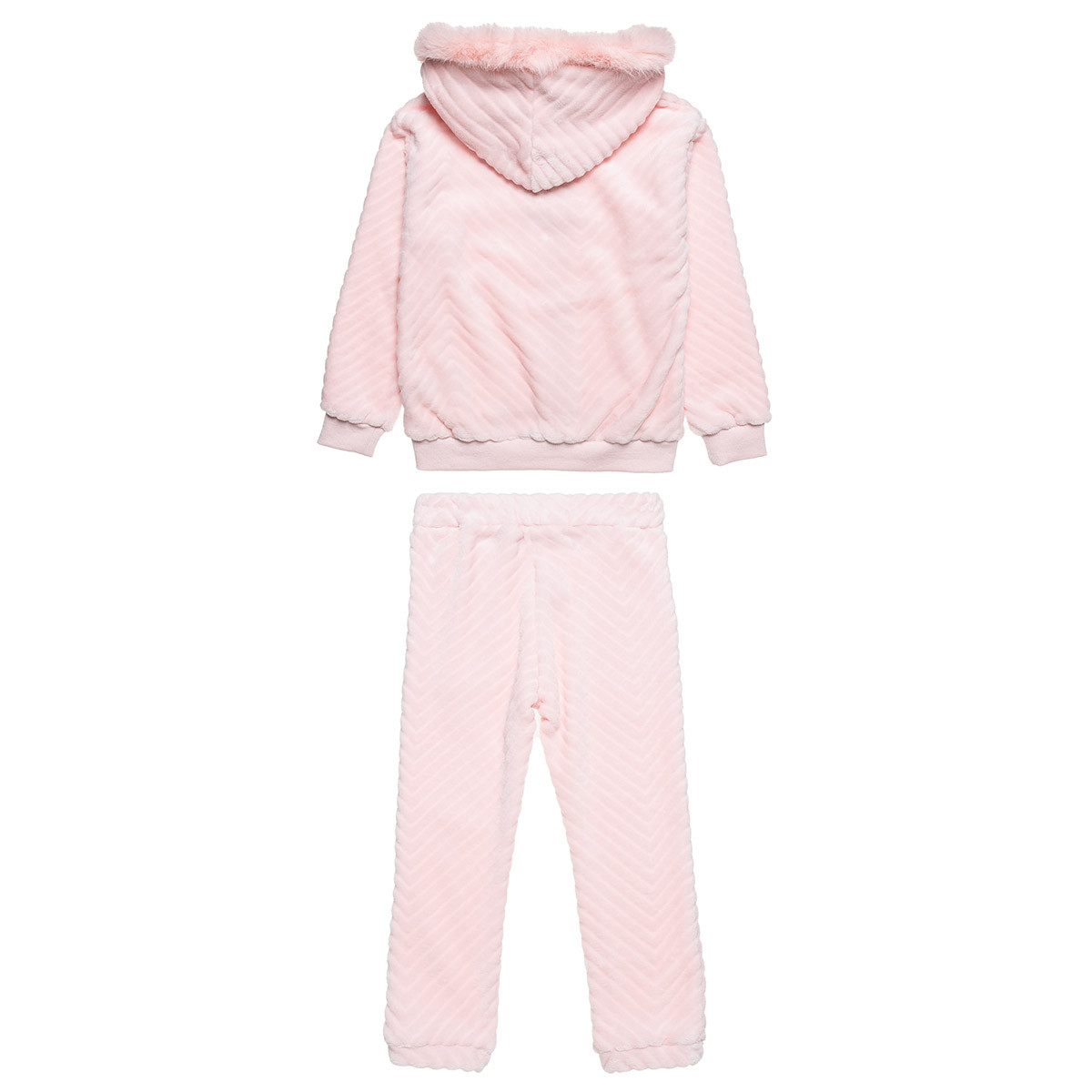 Σετ με εξαιρετικά απαλή χνουδωτή υφή, αποτελούμενο απο ζακέτα με κουκούλα και παντελόνι τύπου joggers.