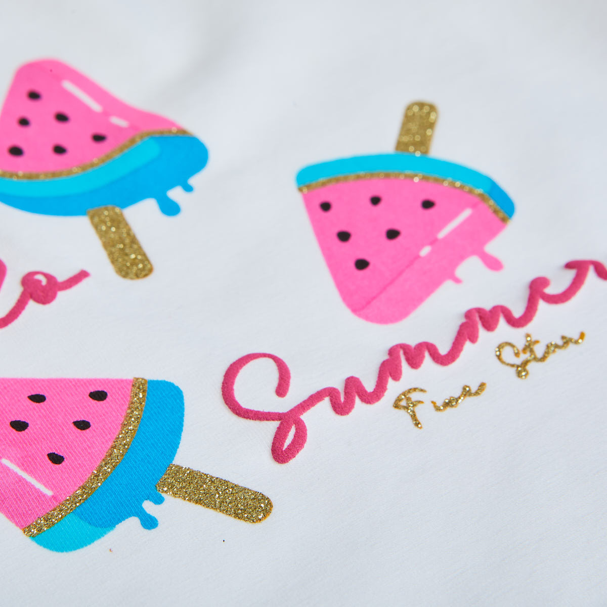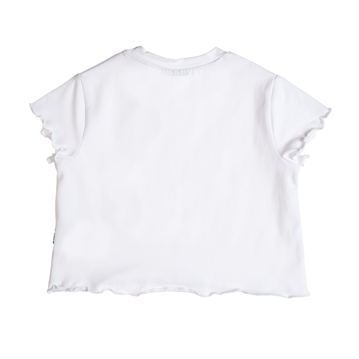 Crop top με εντυπωσιακό σχέδιο μπροστά διακοσμημένο με ανάγλυφες λεπτομέρειες και λαμπερά στοιχεία glitter.