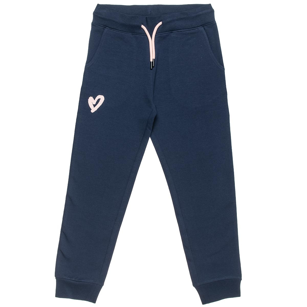 Παντελόνι φόρμας με λάστιχο και κορδόνι στη μέση για καλύτερη εφαρμογή, πλαϊνές τσέπες και διακριτικό τύπωμα καρδιά στο πόδι.