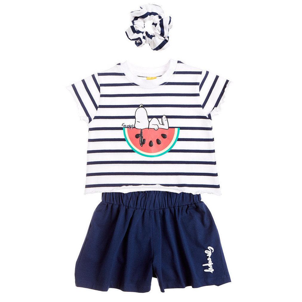 Βαμβακερό σετ Snoopy αποτελούμενο απο crop top, σορτς και ασορτί scrunchie.