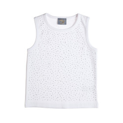 Αμάνικη βαμβακερή μπλούζα με ριπ υφή και διακοσμητικά στρας στο μπροστινό μέρος. }