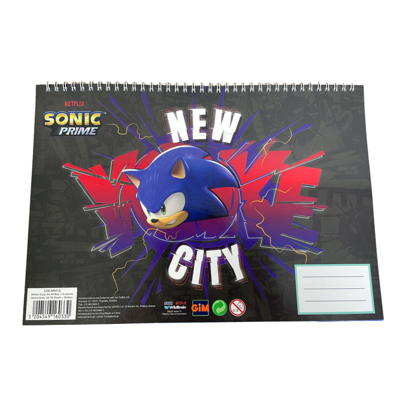 Μπλοκ ζωγραφικής (23x33εκ.) Sonic the Hedgehog με σπιράλ δέσιμο, 40 φύλλων.