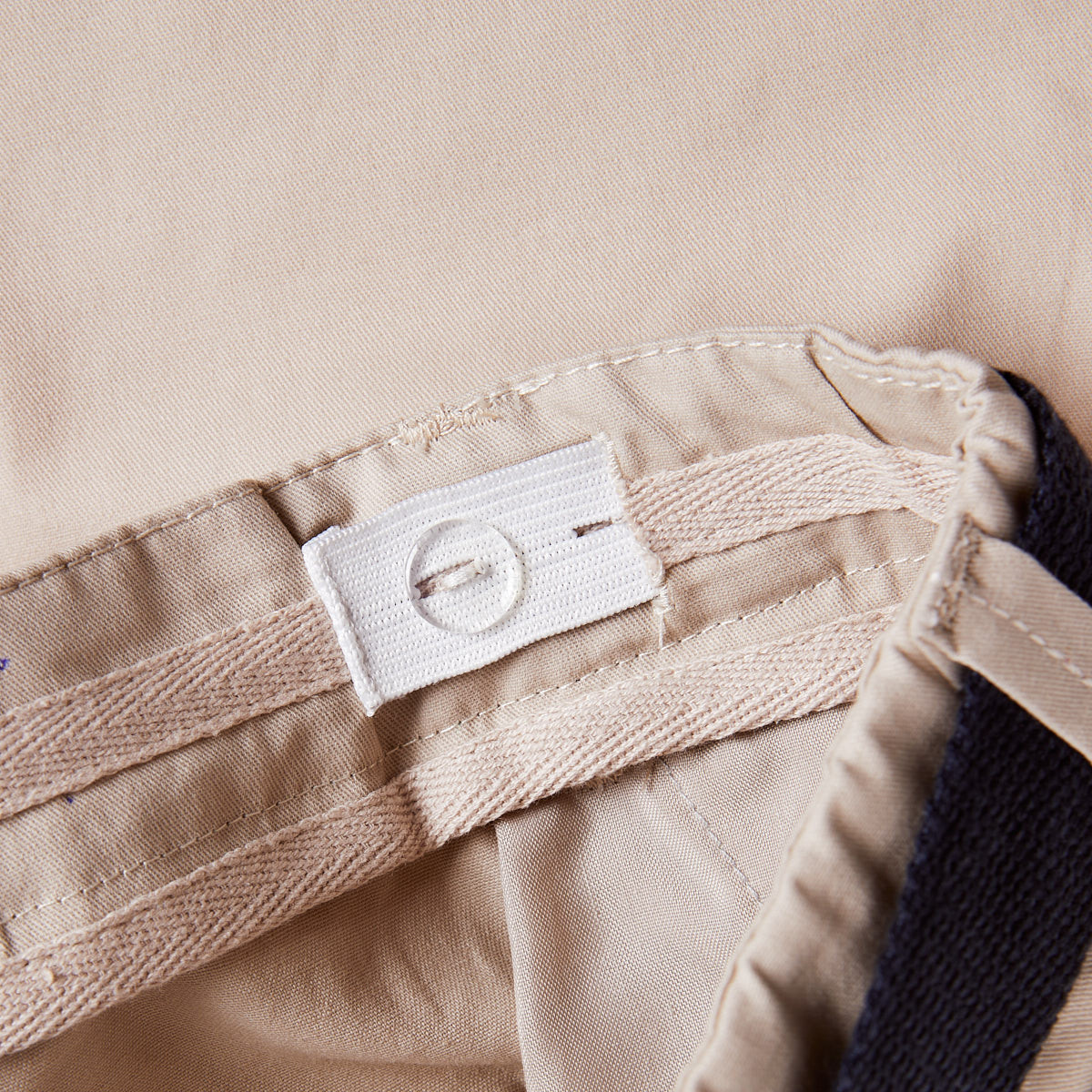 Κουμπί εσωτερικά στη μέση και λάστιχο αυξομείωσης ρυθμίζοντας κατάλληλα την εφαρμογή, κλείσιμο με φερμουάρ και κουμπί, πλαϊνές τσέπες, δύο τσέπες πίσω και ρεβέρ.