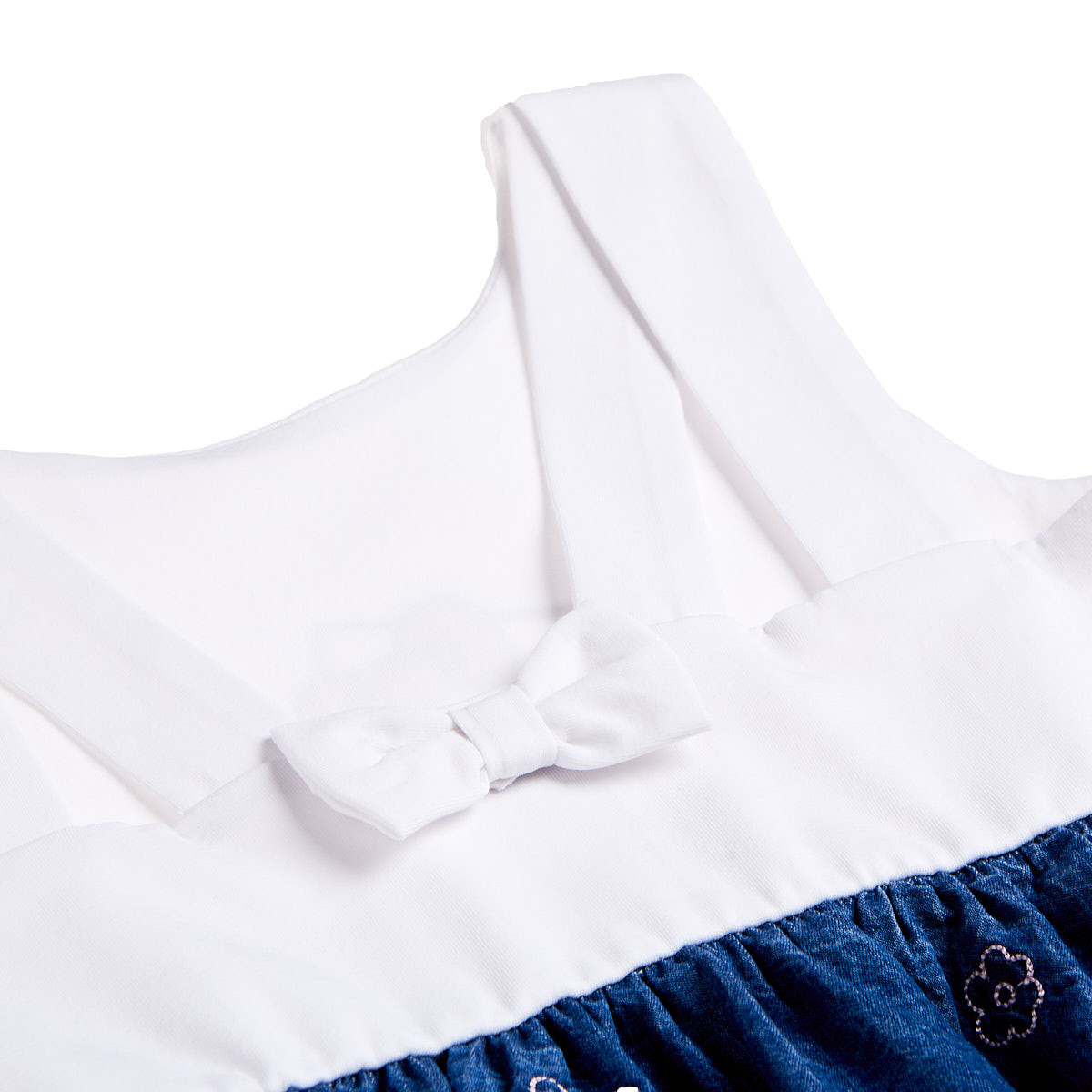 Βαμβακερό φόρεμα Hello Kitty με τύπωμα μπροστά και εξαιρετικά απαλό τζιν ύφασμα με κεντητά στοιχεία στο κάτω μέρος.