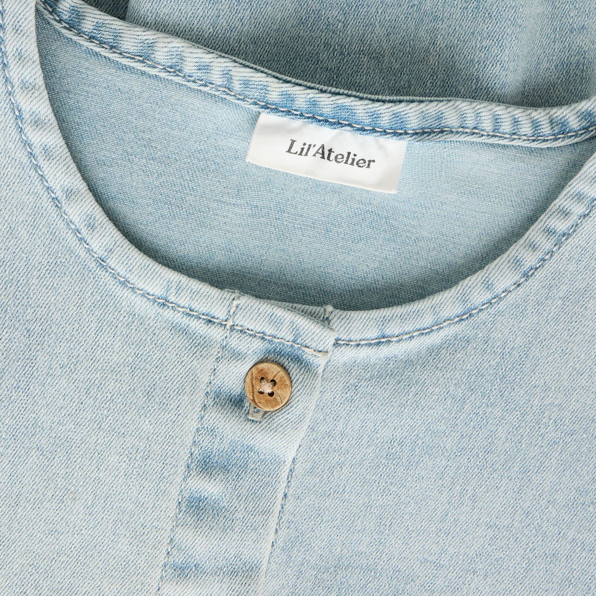 Φόρεμα Lil'Atelier απο απαλό denim ύφασμα με κουμπάκια μπροστά και τσέπες.