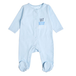 Φορμάκι με κλειστά ποδαράκια, για αγόρια, απο τη σειρά Tender Comforts, από εξαιρετικά απαλό βαμβακερό ύφασμα, ιδανικό για όλη την ημέρα! Διαθέτει γραπτό σχέδιο μπροστά και τρουκς σε όλο το μήκος για μεγαλύτερη ευκολία στο άλλαγμα του μωρού. }