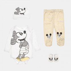 100% Βαμβακερό σετ Disney Mickey Mouse 4 τεμαχίων, αποτελούμενο απο φορμάκι, παντελονάκι τύπου κολάν, καλτσάκια και σκουφάκι, για τους πρώτους 3 μήνες του μωρού! - Το φορμάκι είναι από απαλό ύφασμα προσφέροντας μια ανάλαφρη αίσθηση. Διαθέτει τρουκς στο κάτω μέρος για μεγαλύτερη ευκολία στο άλλαγμα του μωρού και χαριτωμένο τύπωμα με τον αγαπημένο Mickey... }