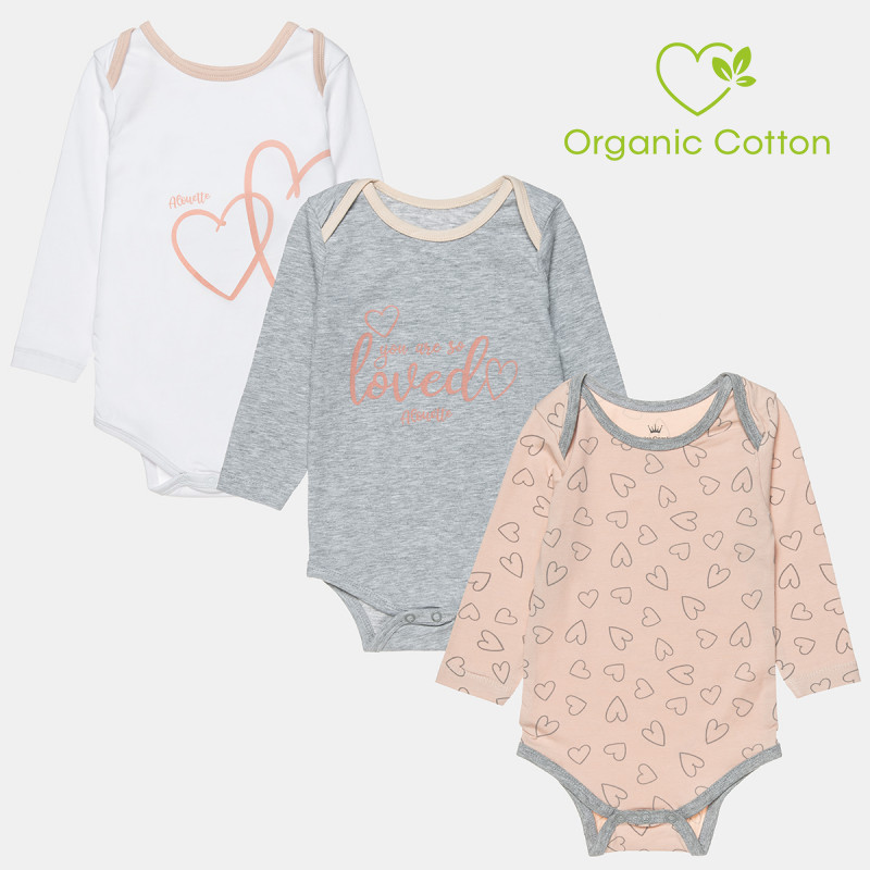 Μακρυμάνικο φορμάκι Tender Comforts απο αγνό οργανικό βαμβάκι, σετ 3 τεμαχίων, με σχέδιο καρδιές.