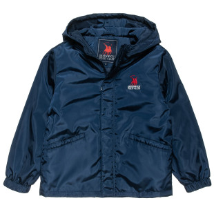 Jacket for boys, with a matte texture, slightly puffy, with a hood and a zipper in the front and a chin guard.