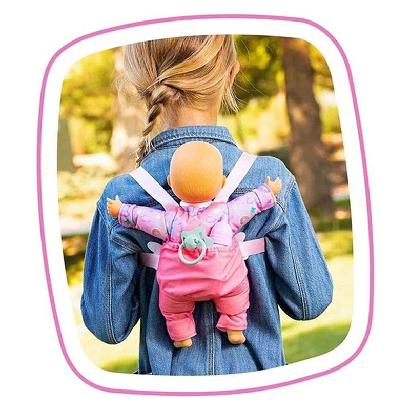With the built-in shoulder straps, this Nenuco can be worn in both carrying and backpack mode; 2 adjustable backpack straps are integrated into the clothing for comfortable carrying In addition, the back pocket of the baby carrier can be used to transport accessories, such as the 2 included in the toy: a bottle and a dummy.