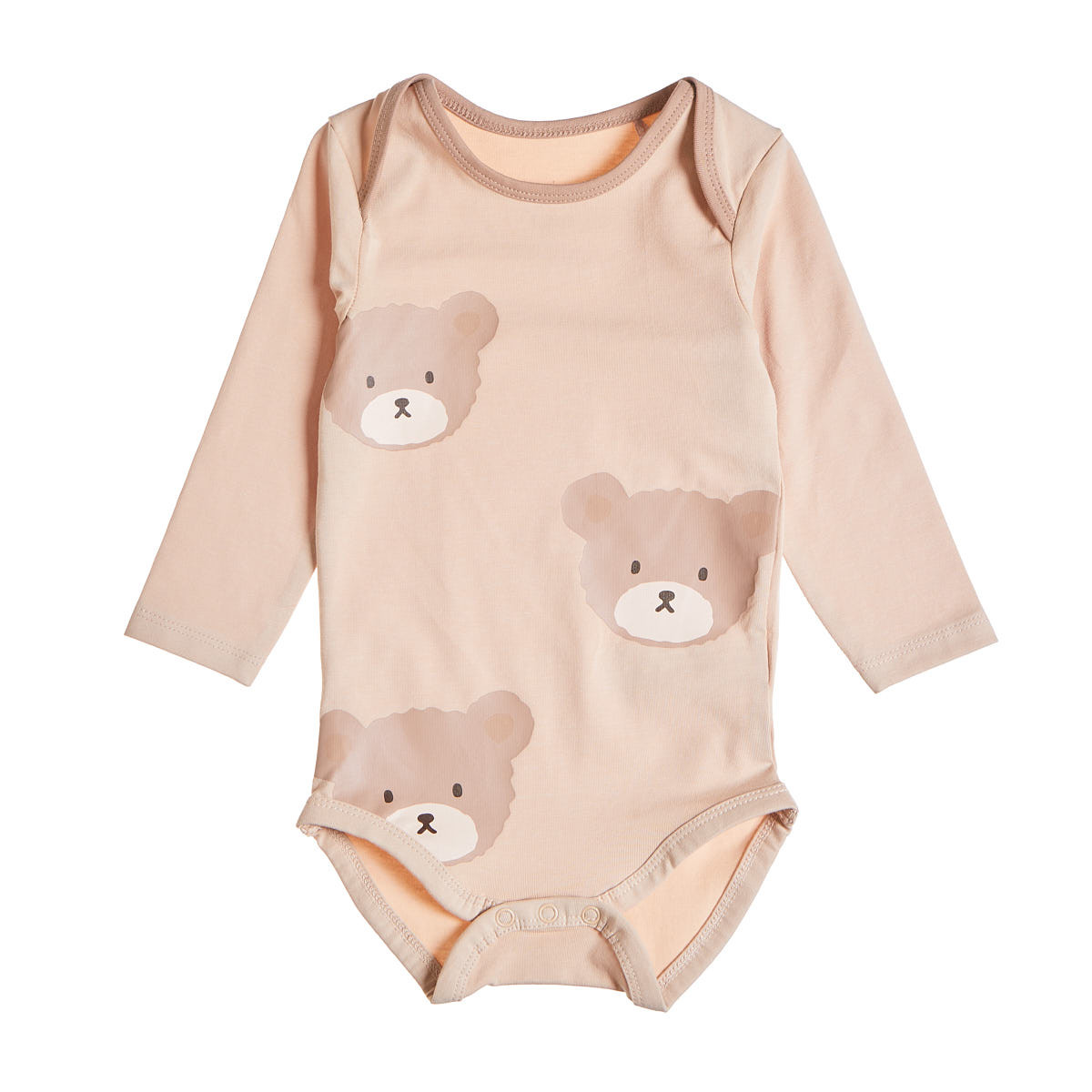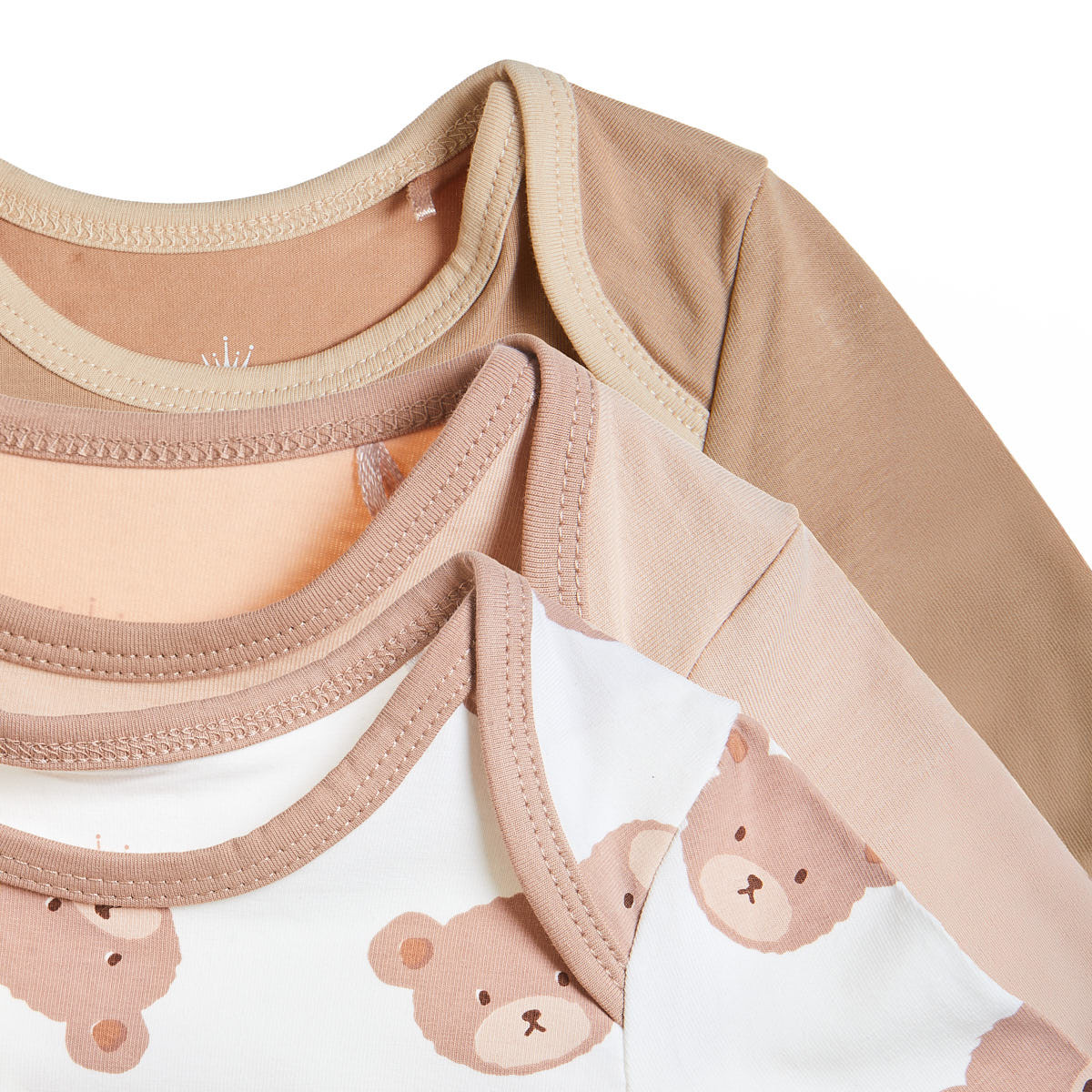 Tender Comforts long-sleeved bodysuit made of extremely soft cotton fabric, set of 3, with a teddy bear design.