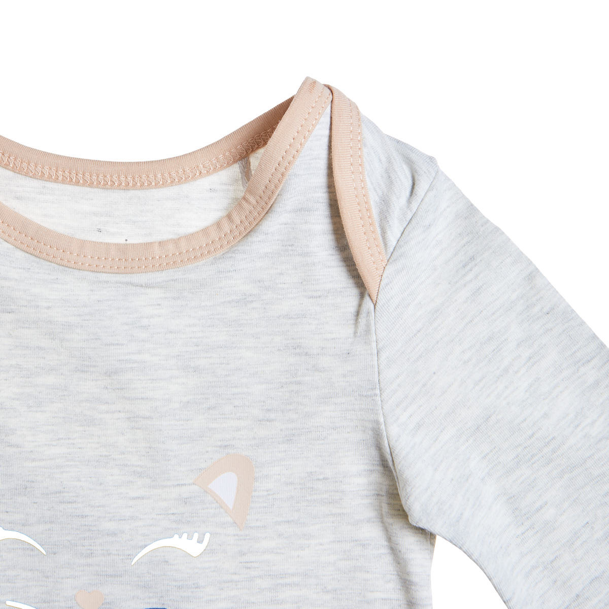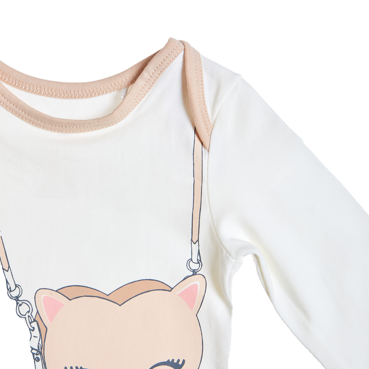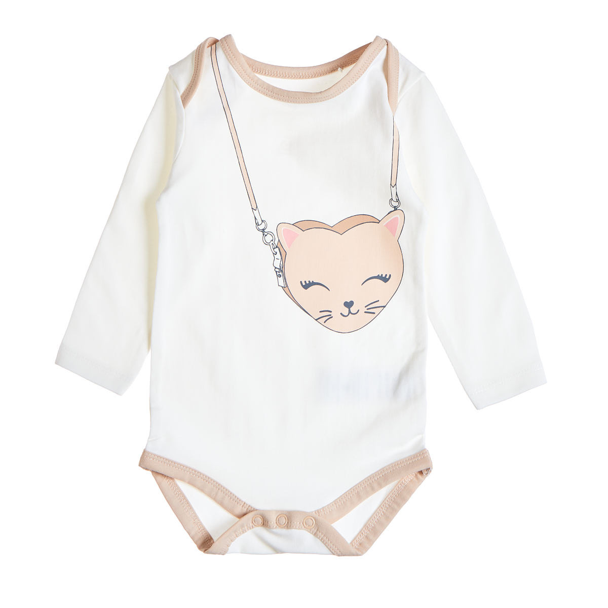 Tender Comforts long-sleeved bodysuit made of extremely soft cotton fabric, set of 3, with a kitty design.