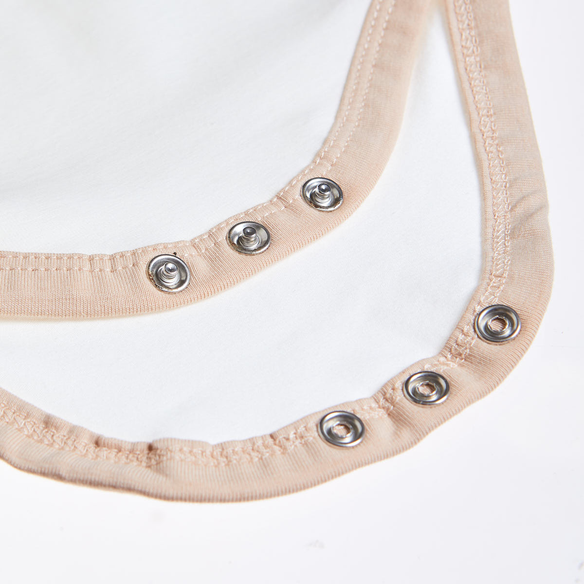 Its neckline is specially sewn so that it unfolds and can be worn without pressing on the baby's head, while when worn it remains firmly in place.