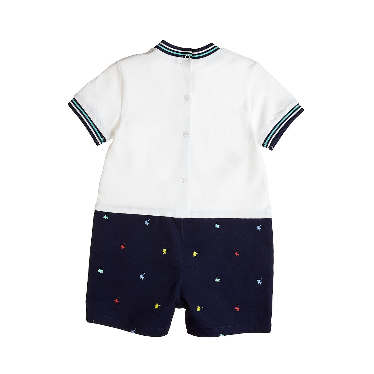 Greenwich Polo Club cotton piqué bodysuit for boys, with two-tone elastic at the neckline and sleeve ends.