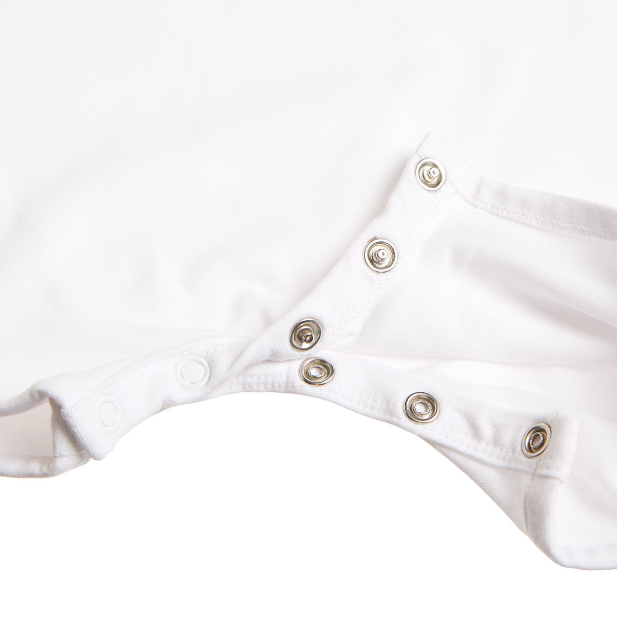 It has snaps on the back and bottom for easy and quick changing of the baby.