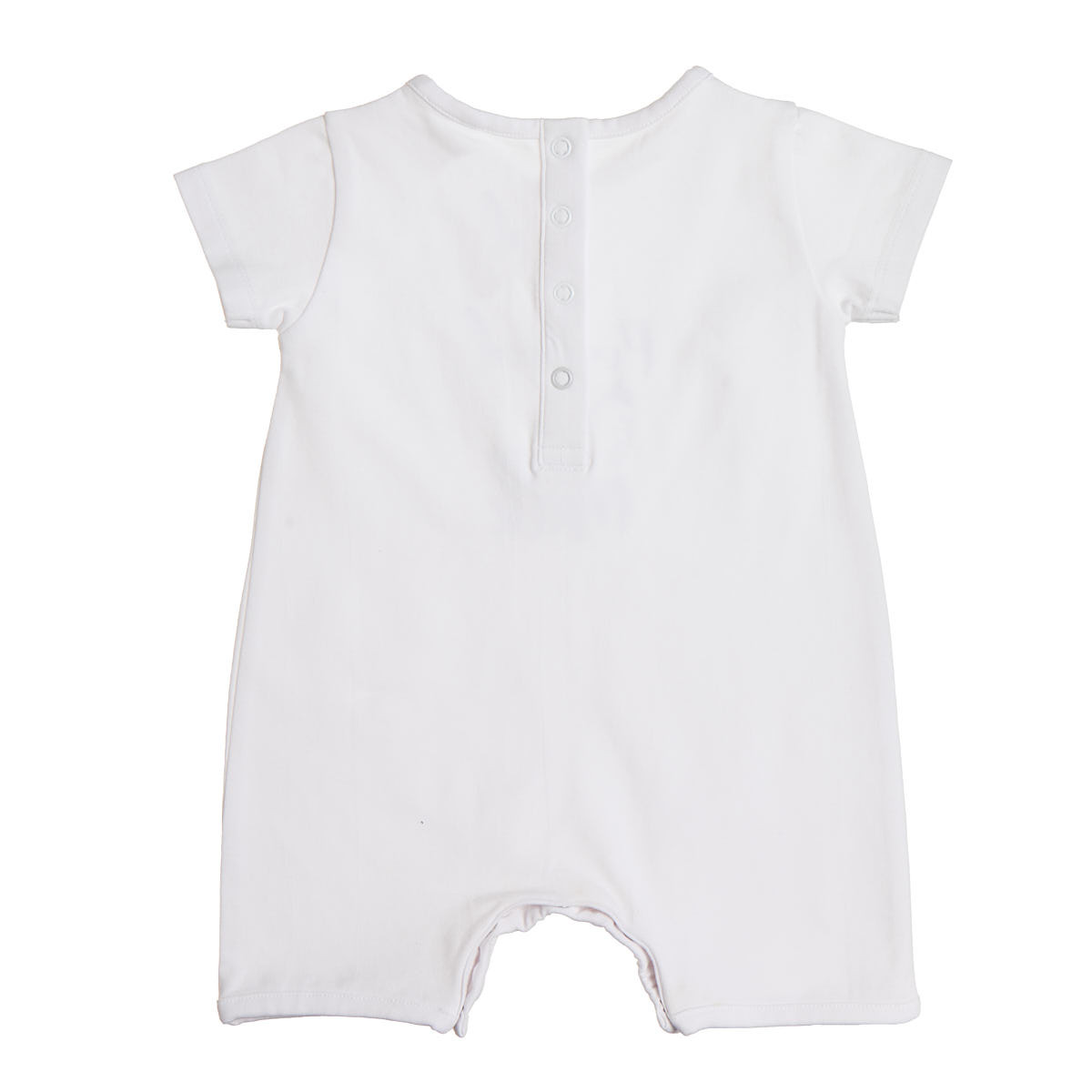 It has snaps on the back and bottom for easy and quick changing of the baby.