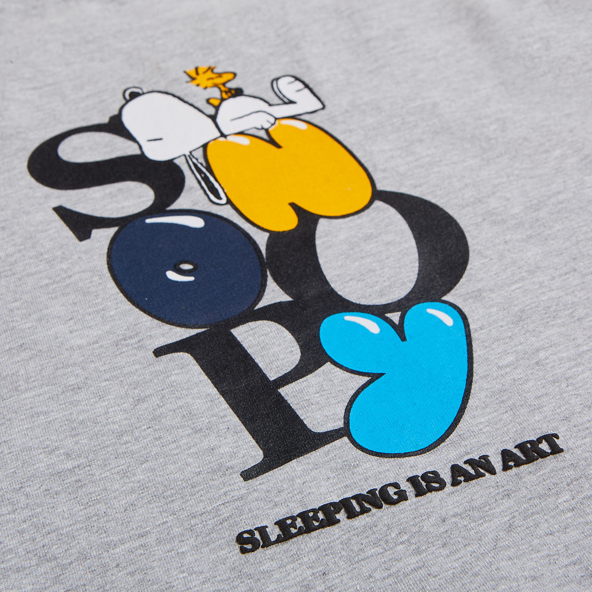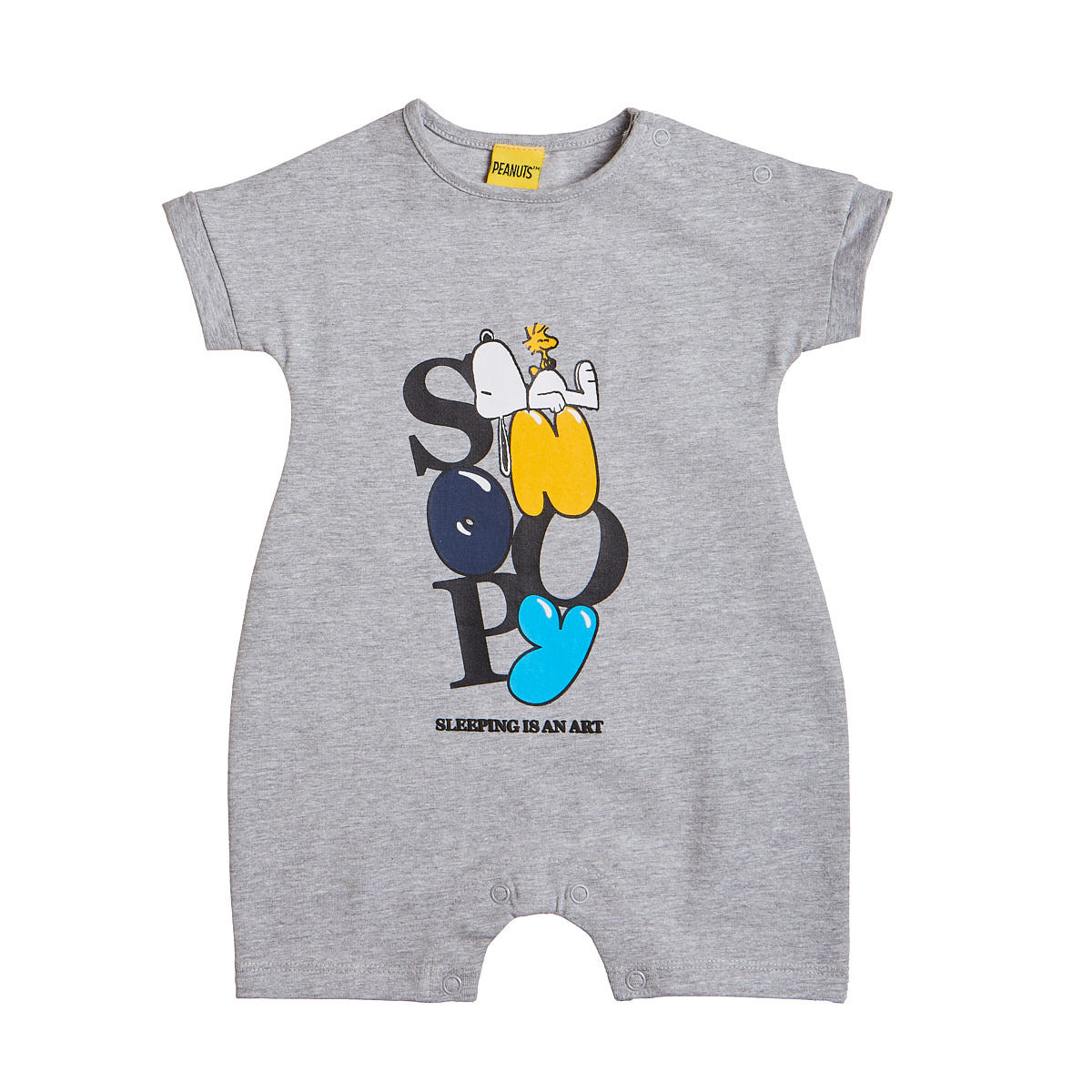 Snoopy cotton bodysuit with front print and buttons on the shoulder and crotch for easier changing of the baby.