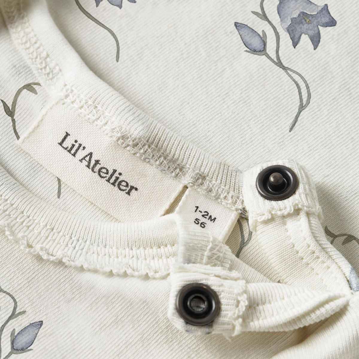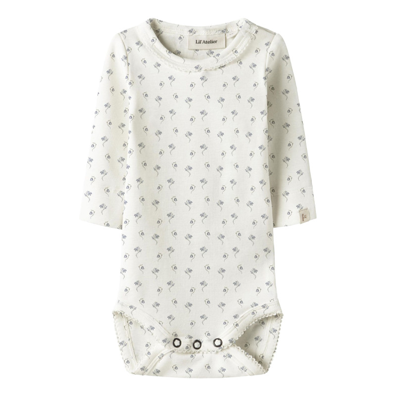 Lil'Atelier onesie, with a floral pattern, made of extremely soft fabric that gently hugs the baby, with a composition of 57% organic cotton, 38% TENCEL™ Lyocell and 5% elastane.