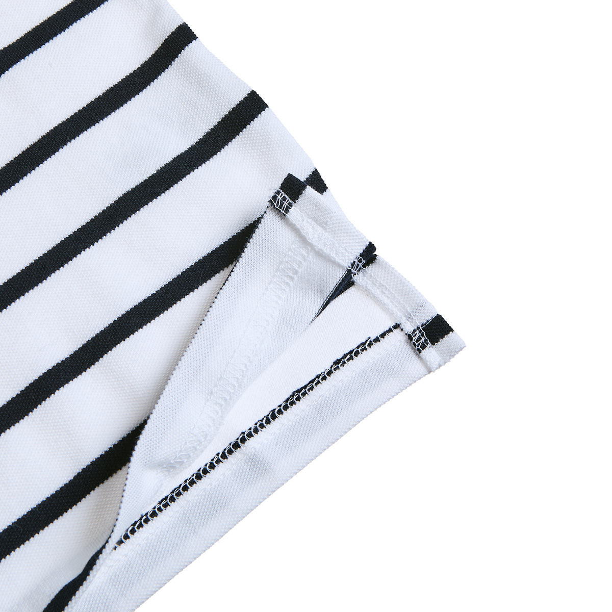 It has a partial front opening with buttons, side openings and an embroidered logo on the front.